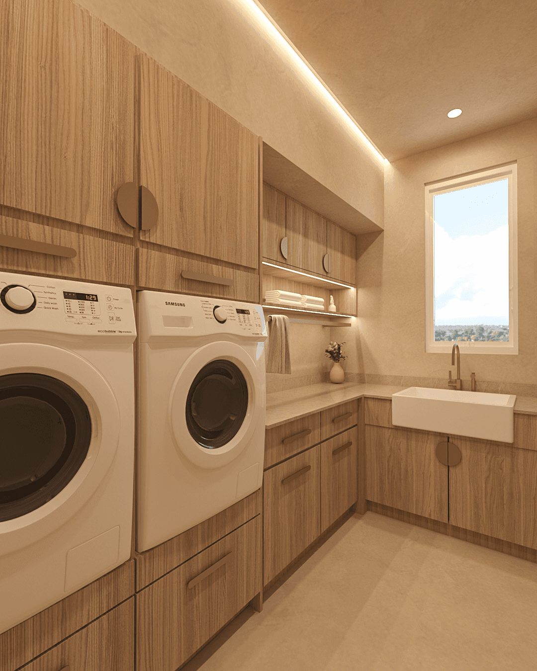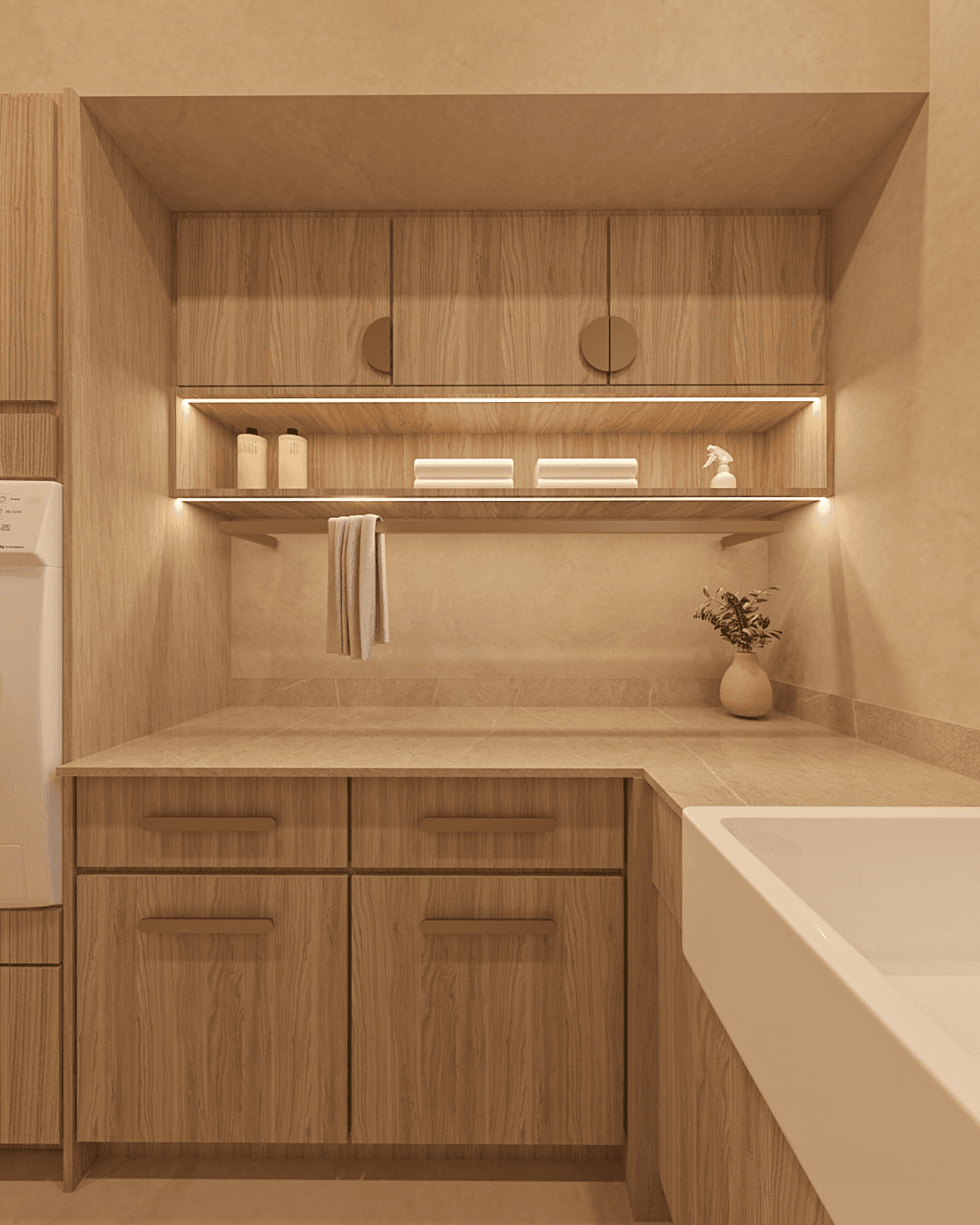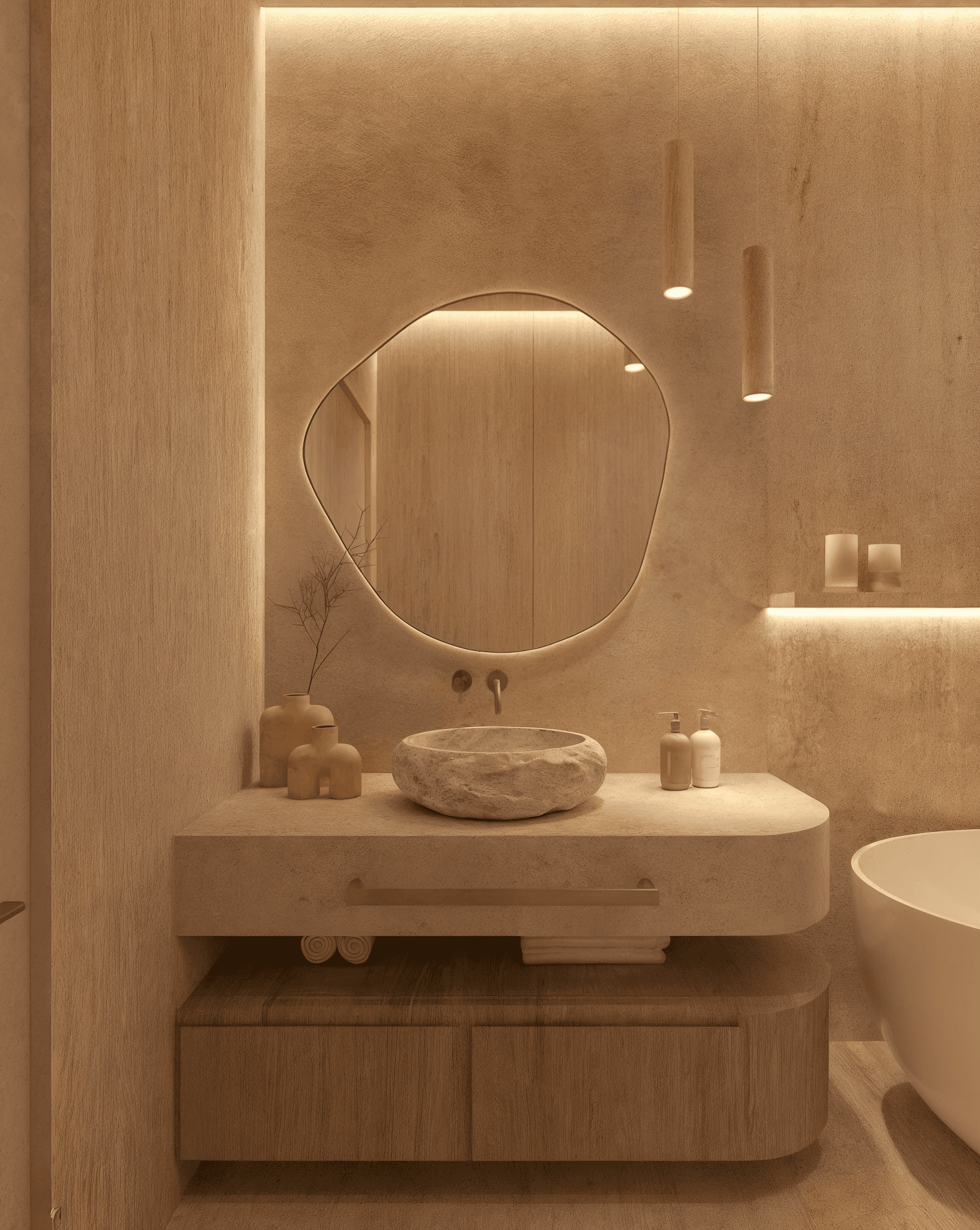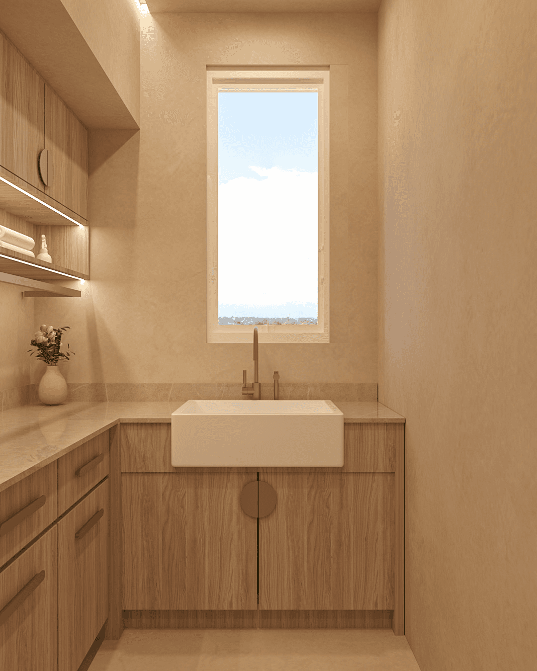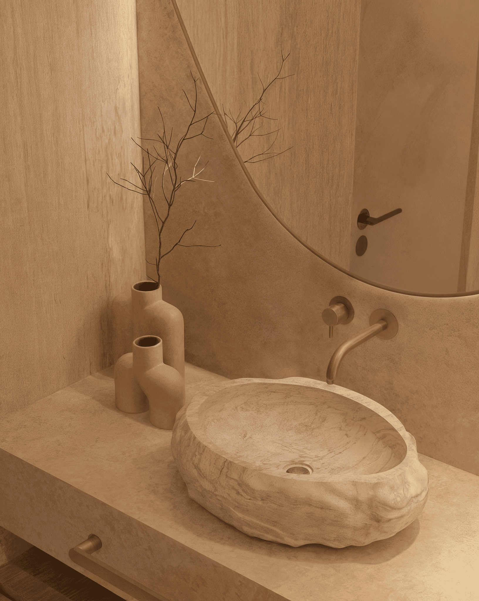 Inspired by earthy tones and the quiet beauty of the Caspian landscape, the home embraces a minimalist language softened by warmth and natural textures. Light, materiality, and space come together to create a sense of balance that feels both grounding and refined.